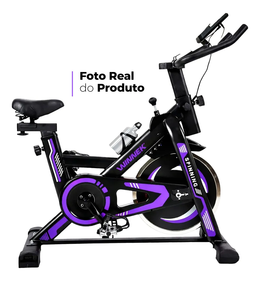 Bicicleta Ergométrica Spinning Com Roda Inércia De 13kg Mecânica Cor Preto Roxa -mecanica Suporte Para Celular / Tablet - Winnek Spin Force