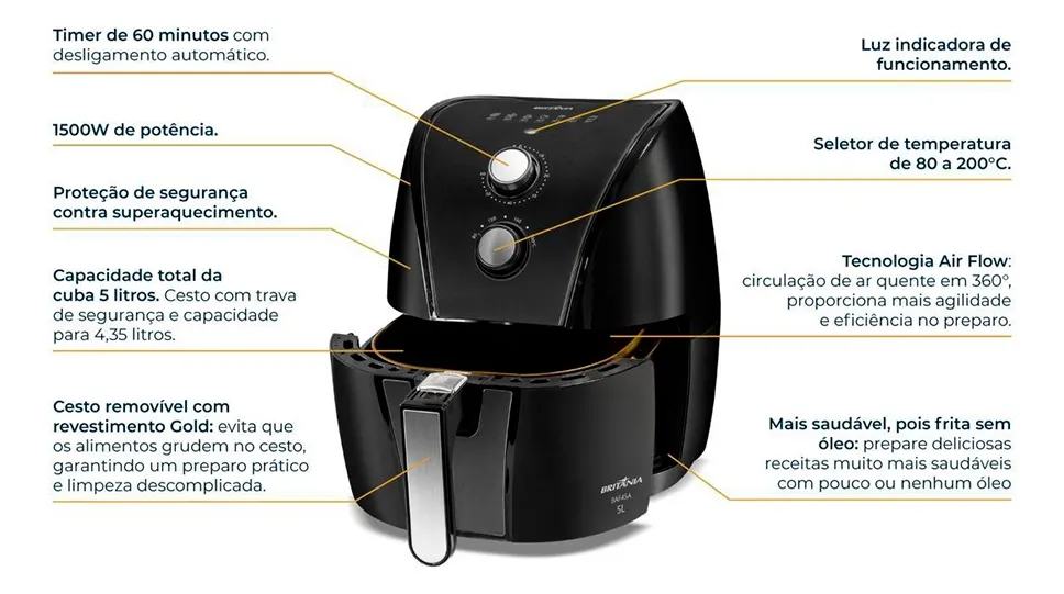 Fritadeira Air Fryer Britânia Baf45a 5l 1500w Cor Preto