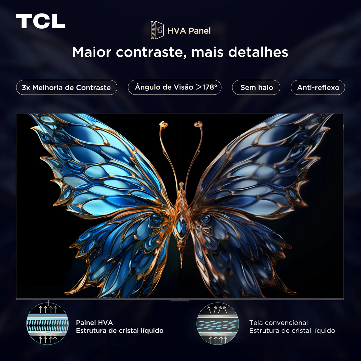 TECNOLOGIA E PRATICIDADE PARA SEU DIA A DIA! A TCL QLED Smart TV 65" 65P7K 4K UHD Google TV oferece uma experiência de entretenimento imersiva com tecnologia de ponta e recursos avançados. Aqui está uma descrição detalhada do modelo: Design Premium: A TV TCL 65P7K conta com um design elegante, com bordas finas e um acabamento moderno que combina com qualquer ambiente, seja em sua sala de estar ou quarto. O modelo de 65 polegadas proporciona uma tela grande e imersiva, ideal para quem busca uma experiência cinematográfica. Qualidade de Imagem Incrível: Equipado com tecnologia QLED (Quantum Dot), a TV oferece cores mais vibrantes e contraste superior. A resolução 4K UHD (3840 x 2160 pixels) garante uma imagem nítida, com detalhes impressionantes e realismo visual, ideal para assistir filmes, séries e jogos com uma clareza surpreendente. Tecnologia HDR: Com suporte para HDR (High Dynamic Range), a TCL 65P7K entrega imagens com maior gama de cores e contrastes mais profundos. Isso proporciona uma experiência visual ainda mais rica, com cenas mais vibrantes e realistas, especialmente em conteúdos compatíveis com a tecnologia. Sistema Google TV: A Smart TV vem com o Google TV, oferecendo uma interface intuitiva e personalizada. Além de acesso a todos os principais aplicativos de streaming (como Netflix, YouTube, Disney+, Prime Video), o Google TV também facilita a busca por conteúdos com comandos de voz, integrados ao Google Assistente, e permite que você organize suas preferências de maneira simples e rápida. Som de Alta Qualidade: Embora não tenha detalhes sobre o sistema de som exato, TVs TCL costumam contar com suporte a tecnologias de áudio como Dolby Audio e DTS, proporcionando uma experiência sonora envolvente e de alta qualidade. Conectividade e Recursos Inteligentes: A 65P7K possui uma gama de opções de conectividade, incluindo Wi-Fi, Bluetooth, portas HDMI, e USB, permitindo conectar diversos dispositivos, como consoles de videogame, reprodutores de mídia e outros aparelhos. Com a integração do Chromecast, você pode transmitir conteúdo diretamente do seu smartphone ou tablet para a tela da TV. Controle por Voz e Assistente Virtual: O controle remoto acompanha o Google Assistente integrado, permitindo que você acesse seus conteúdos e controle outros dispositivos inteligentes da sua casa apenas usando comandos de voz. Compatibilidade com Apple AirPlay: Para usuários de dispositivos Apple, a TCL 65P7K também é compatível com AirPlay 2, o que facilita o espelhamento da tela do seu iPhone, iPad ou MacBook diretamente para a TV. Funções de Jogo: A TV oferece funcionalidades específicas para gamers, como a taxa de atualização rápida e low input lag, que garantem uma jogabilidade suave e sem atrasos.