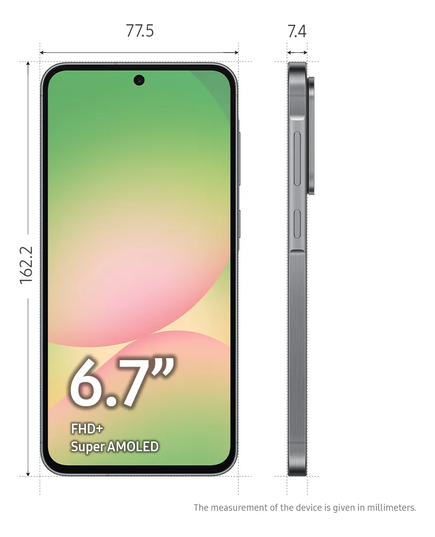 Dispositivo desbloqueado para que você escolha a companhia telefônica de sua preferência. Compatível com redes 5G. Tela Super AMOLED de 6.7". Tem 3 câmeras traseiras de 50Mpx/12Mpx/5Mpx. Câmeras frontais de 12Mpx. Bateria de 5 Ah. Memória interna de 128GB. A prova d'água. Com reconhecimento facial e sensor de impressão digital. Resistente as quedas. Cartão eSIM incluído. Equipado com o processador Exynos 1580 (4nm).