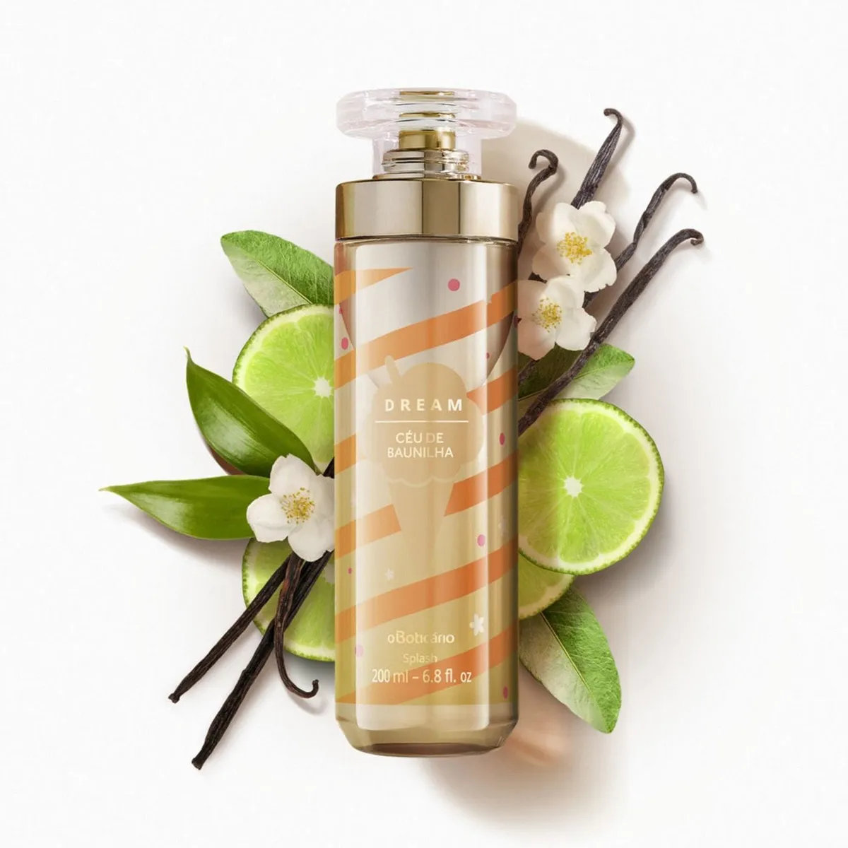 Descrição O Body Splash Desodorante Colônia Dream Céu de Baunilha o Boticário é uma fragrância afetiva, aconchegante e feminina, perfeita para mulheres sonhadoras, românticas e solares. Com uma composição pertencente à família olfativa Gourmand, apresenta notas de Baunilha, Pimenta Rosa, Damasco, Frutas Secas e Flor Solar. Um aroma doce, mas equilibrado, que proporciona frescor e pode ser reaplicado ao longo do dia, inspirando e acalentando corações cheios de esperança.