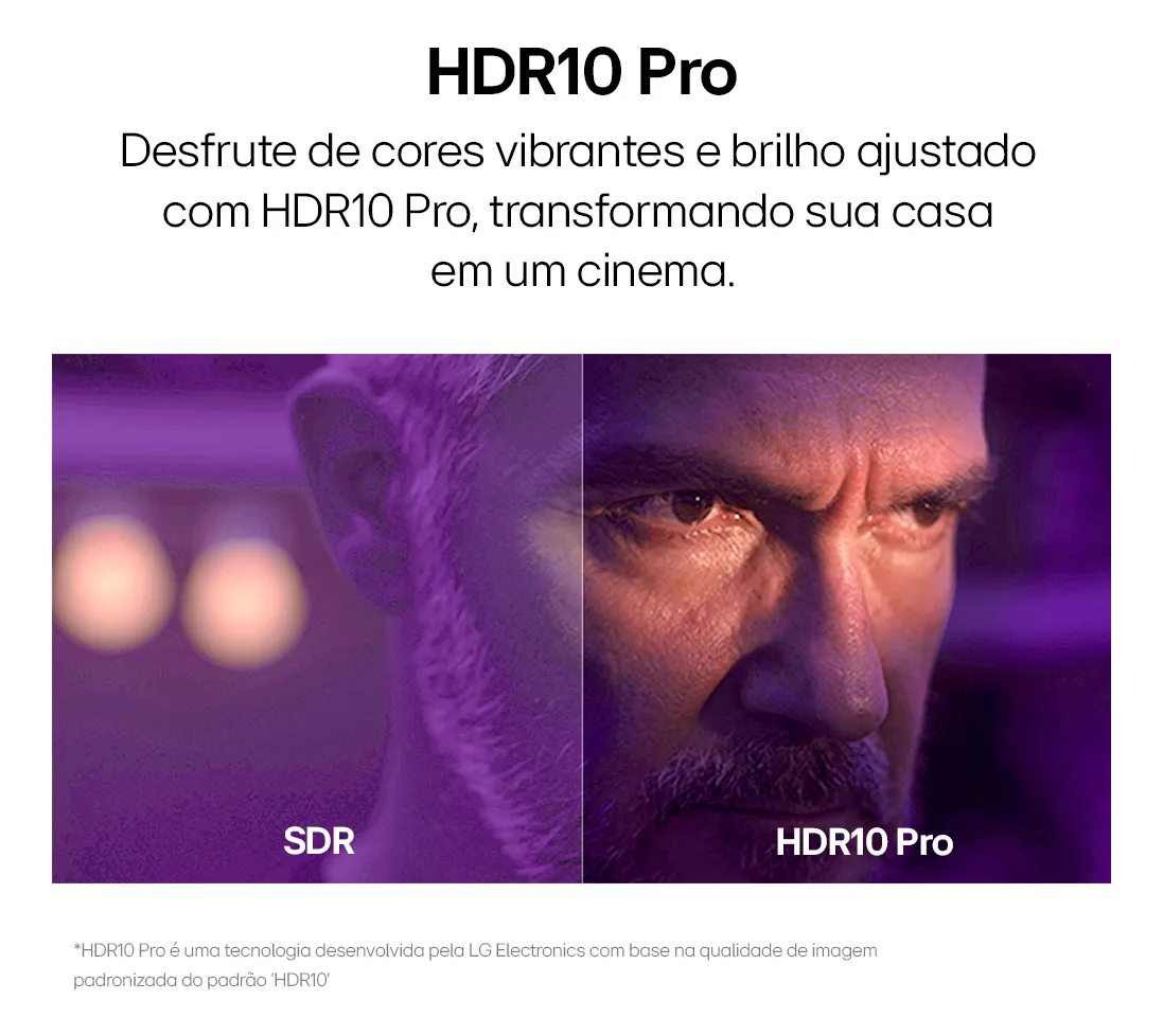 SMART TV LG 43" 43LR671C0SA ThinQ AI Amazon Alexa Apple Airplay 2 HDR 10 Otimizador de Games AI Sound A Smart TV LG de 43" 43LR671C0SA oferece uma experiência imersiva com resolução Full HD, HDR10 e otimizador de games, ideal para entretenimento em casa. Equipado com o processador AI, garante imagens nítidas e som aprimorado com AI Sound. Com suporte a Alexa, Apple Airplay 2, Bluetooth e Wi-Fi, conecta-se facilmente a dispositivos inteligentes. A TV conta com sistema operacional webOS 23. Design compacto, leve e eficiência energética com consumo em stand by abaixo de 0,5W. Especificações Técnicas Imagem Tamanho: 43 Polegadas Resolução: Full HD (1.920 x 1.080) Frequencia: 60Hz Nativo Processador: Processador AI a5 Ger6 Upscaler AI: Upscaler de Resolução Dynamic Tone Mapping: Sim Controle de Briilho IA: Sim HDR (High Dynamic Range): HDR10 / HLG Modo de Imagem: 8 modos (Vívido, Standard, Eco, Cinema, Esportes, Otimizador de Jogos, ISF Especialista (Modo Claro Dia), ISF Especialista (Modo Escuro Noite) Jogos HGIG Mode :Sim Otimizador de Jogos: Sim Acessibilidade Alto Contraste: Sim Escala de Cinza: Sim Cores Invertidas: Sim Áudio AI Sound: AI Sound (Virtual 5.1 Up-mix) Clear Voice Pro: Sim LG Sound Sync: Sim Modo áudio compartilhado: Sim Saída de Áudio Simultânea: Sim Bluetooth Surround Ready: Sim (Reprodução em 2 vias) Saída de Áudio: 20W AI Acoustic Tuning: Compatível (controle Smart Magic vendido separadamente) Audio Codec: AC3(Dolby Digital), EAC3, HE-AAC, AAC, MP2, MP3, PCM, WMA, apt-X Sistema de Som: 2.0 canais Conectividade Retorno de Canal de Áudio: eARC (HDMI 2) Bluetooth Support: Sim (V5.0) Ethernet: Sim (1) Simplink (HDMI CEC) Sim SPDIF (Saída de Áudio Digital Óptica) Sim Entrada HDMI: Sim (2) Entrada de RF: Sim (1) USB: Sim ( 1- USB 2.0) Wi-Fi: Sim (Wi-Fi 5) Funcionalidades Compatível com Apple Airplay2: Sim Sistema Operacional: webOS 23 Alerta de Esportes: Sim Configurações Família: Sim LG ThinQ AI: Sim Compatível com Câmera USB: Sim Web Browser Completo: Sim Reconhecimento Inteligente de Voz: Compatível LG Channels: Sim Controle Smart Magic Compatível: (vendido separadamente) Compartilhamento entre Ambiente: Sim App de Controle pelo Smartphone: Sim Modo Hotel: Sim Amazon Alexa: Sim Dimensões Peso com base: 8,1 Kg Peso sem base: 8 Kg Dimensões com base (LXAXP): 973 x 623 x 216 mm Dimensões sem base (LxAxP): 973 x 572 x 85 mm VESA: 200 x 200 Energia Voltagem: AC 100~240V 50-60Hz Consumo de energia em stand by: Abaixo de 0,5W Acessórios Inclusos Controle Remoto: Convencional (Padrão) Cabo Energia: Sim Pilhas: Sim (2) Anatel: 18830-22-01925