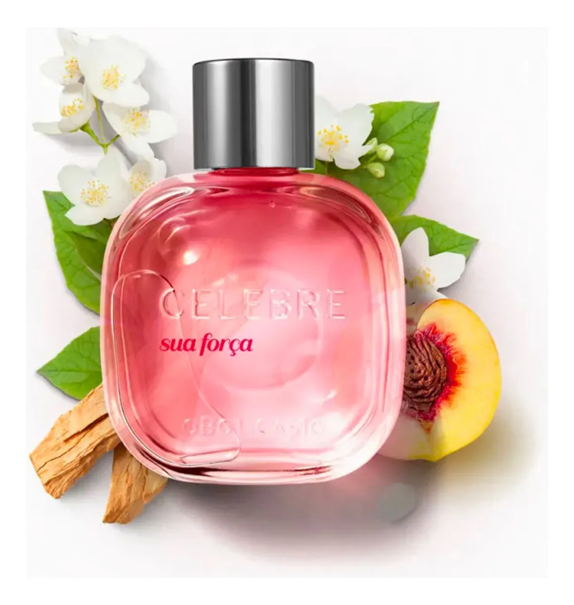 Celebre Sua Força Desodorante Colônia o Boticário é uma fragrância inspirada em mulheres fortes, ideal para o dia a dia de cuidado com a pele e com o corpo. Apresenta uma combinação de notas frutadas com flores brancas, proporcionando uma refrescância potente que se complementa com a citricidade do pêssego e finaliza com um blend cremoso de madeira. Uma celebração em forma de perfume, trazendo frescor e potência para acompanhar as conquistas diárias.