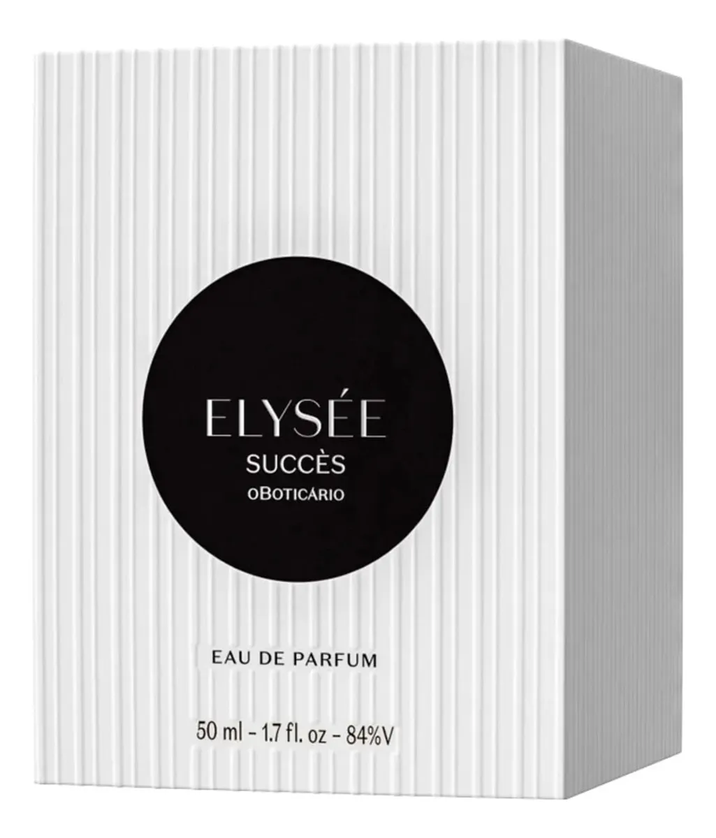 Descrição O Elysée Succès Eau de Parfum do Boticário é a fragrância da mulher forte que ama sofisticação e busca o seu próprio êxito. Sua fórmula conta com a singularidade da Rosa Negra da Turquia, que traz um tom mais escuro, intenso e marcante, revelando sofisticação, personalidade e singularidade. Uma fragrância vegana com a medida certa de intensidade, combinando a elegância das madeiras à doçura e frescor das notas florais. Oferece alta fixação e denota sofisticação. A embalagem de Elysée Succès é inspirada na Rosa Negra para demonstrar ainda mais a força da mulher.